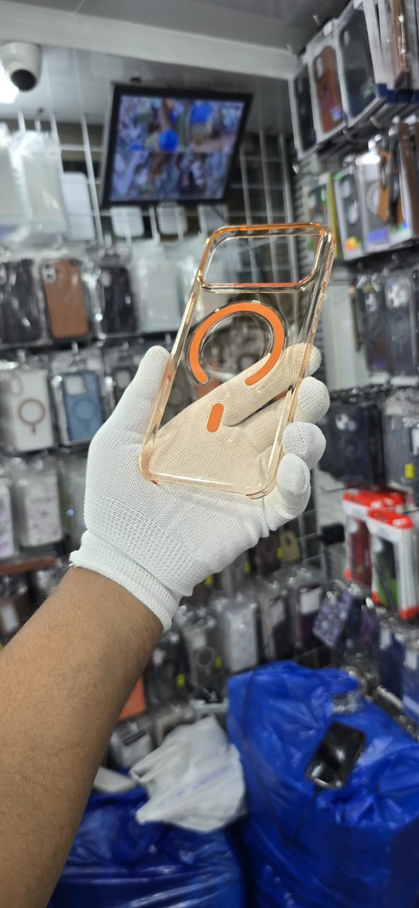 Stay protected while keeping it minimal with the iPhone 17 Pro & iPhone 17 Pro Max MagSafe Orange Transparent Case.